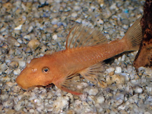 スーパーレッドブッシーマウスプレコ (欧便)SOLD OUT オレンジ色が美しいブッシーマウスプレコの改良品種。 可愛らしくなって人気もUP! (体長/約5〜6cm ¥2,900) |